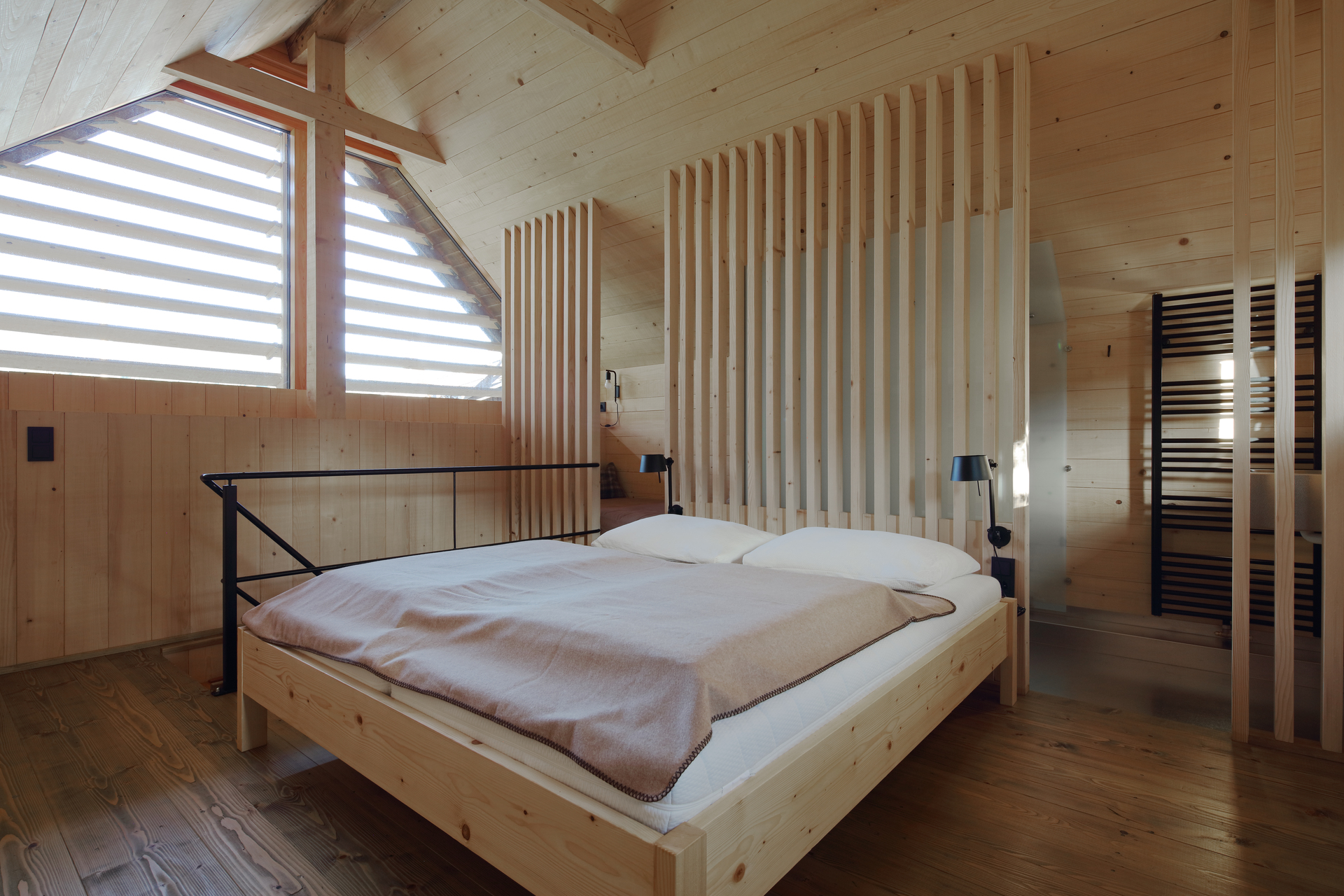 Der Troadkasten aus dem Jahr 1714 wurde mit Eigenleistung aus eigenem Tannenholz und bäuerlicher Hanffaser saniert. Reduziert auf das Wesentliche ist der Troadkasten zu einem bewohnbaren Möbelstück geworden. (Text: Architekt:innen)