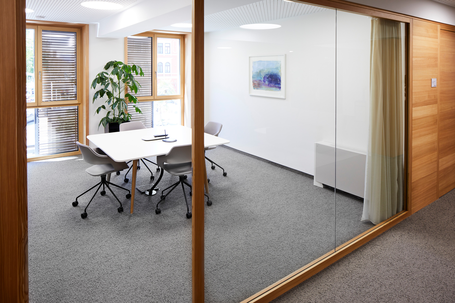 Im Obergeschoss befinden sich 11 Beratungsräume sowie ein Leiterbüro. Diese sind so um einen großzügigen Foyerbereich gruppiert, dass sie bestmöglich belichtet werden.