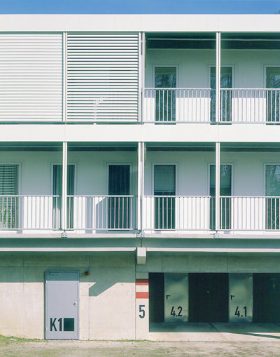 Die 8 Wohnungen sind jeweils 65 m² gross, haben einen PKW-Stellplatz und ein Kellerabteil. (17.09.2001)