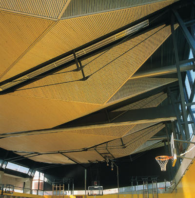Dem Ideal der Bewegung im Freien folgend entsteht ein Innenraum von maximaler Grösse, deren Verbindung zum Außenraum sowohl visuell als auch körperlich-begehbar als fließend bezeichnet werden kann. Natürliche Belichtung und Belüftung der Turnhalle sind somit Ergebnisse von Gedanken, die sich mit der Landschaft auseinandersetzen. Entsprechend der dörflichen Situation wird ein nach außen hin einfaches Erscheinungsbild angestrebt. So zeigt sich die Turnhalle im wesentlichen als ein auf einer Basis ruhendes Volumen, dessen leichte Neigung die Topographie widerspiegelt.