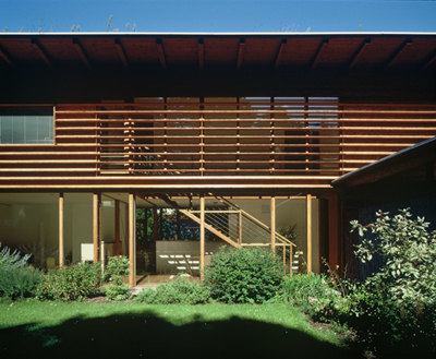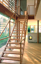 Ein ausgefeiltes Klima- und Versorgungskonzept mit Niedertemperaturradiatoren im Obergeschoss und Fussbodenkonvektoren im Erdgeschoss trägt zum Wohnkomfort wesentlich bei: Erdverlegte Zuluftrohre bilden Wärmetauscher für sommerliche Kühlung und Vorwärmung der Frischluft im Winter. Sonnenkollektoren auf dem Dach versorgen einen 400 Liter fassenden Zwischenspeicher, WCs, Schwimmbad und Gartenbewässerung werden aus dem eigenen Brunnen gespeist. (Text: Gabriele Kaiser, 15.05.2002)