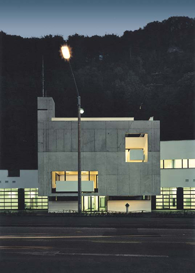 Bestehend aus drei kubischen Baukörpern, welche miteinander verbunden sind, wirkt das Objekt wie drei einzelne Gebäude, womit auf die Bebauung der unmittelbaren Umgebung Bezug genommen wurde.
