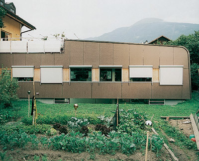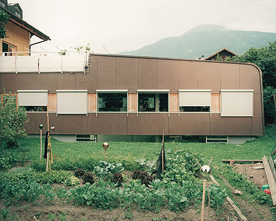 Um die empfindlichen Fotografien und Druckvorlagen vor schädlicher Lichteinwirkung zu schützen, ist entlang der durchlaufenden Fixverglasungen für ausreichenden Sonnenschutz gesorgt, zusätzlich rhythmisieren Lüftungsklappen aus Lärchenholz die Fensterbänder an den Längsseiten des Anbaus. Seine Schmalseite ist mit dem Dach zu einer kupferblechgedeckten Einheit zusammengefasst, was die Kompaktheit des Baukörpers semantisch verstärkt. Man darf vermuten, dass die Familie Defner (und deren Mitarbeiter:innen) ihre Arbeit mit Freude verrichtet. (Text: Gabriele Kaiser)