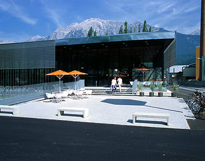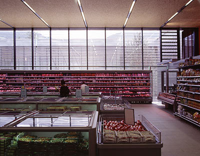 Das große Volumen suggeriert in seiner Konstruktion und Materialität (tragende Fassade aus Stahl, Dach aus Sandwichpaneelen, als Hülle ein transparentes Kettenhemd) Offenheit und Leichtigkeit, ohne die architektonische Bodenhaftung einzubüßen. Die weitläufige und hohe Verkaufsfläche ist luftig gefasst, ein teilweise gedeckter Vorplatz definiert einen lapidaren städtischen Freiraum, den es zuvor an dieser Stelle nicht gab. Die Zusammenarbeit mit dem französischen Architekten dürfte für den Bauherrn Hansjörg Mölk auch bei diesem dritten Bauauftrag (ein weiterer Perrault-MPreis steht in Zirl) optimal verlaufen sein. Interessant sei für ihn der Dialog mit Perrault auch insofern gewesen, als „die Materialentscheidungen und die Details fast immer automatisch der Funktion gefolgt sind und nie willkürlich getroffen wurden. Insofern habe ich in diesem Prozess wieder sehr viel über Architektur gelernt.“ (Text: Gabriele Kaiser, 26.02.2004)