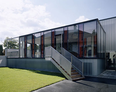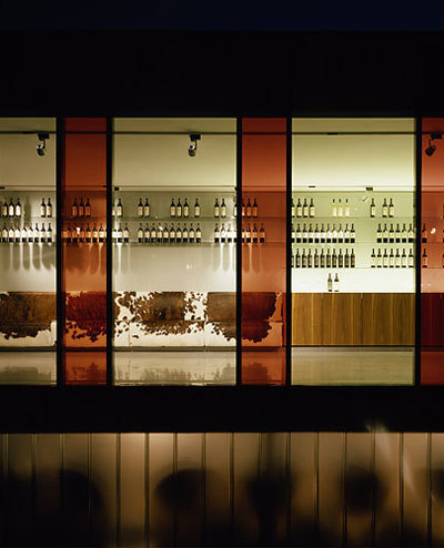 Das Gebäude, so abstrakt es auch wirken mag, versinnbildlicht auf eleganteste Art das vielschichtige Betätigungsfeldes der Familien Reumann. Licht und Wasser, die Garanten für das Wachsen und Gedeihen sind ebenso thematisiert, wie der Weinstock selber. In einer kleinen Laube, auf gleicher Ebene mit dem Degustationsraum und formaler Ausgangspunkt für den Lichtkeil des Presshauses, wird die jahreszeitliche Entwicklung der Weinrebe in Erinnerung gerufen. Gleichzeitig symbolisiert die Laube die Ur-Symbiose zwischen Natur und Architektur wie auch die Architektur selber immer wieder auf die Natur verweist. Das Licht als lebendige Kraft für das Reifen der Weintrauben ist stets erlebbar und in seinen verschiedenen Farben präsent. Besonders eindrücklich wird dies im Leuchten der transparenten roten Gläser der Fassade, das dem Lichtfunkeln eines ins Licht gehaltenen Rotweinglases gleicht. (Text: Architekt)