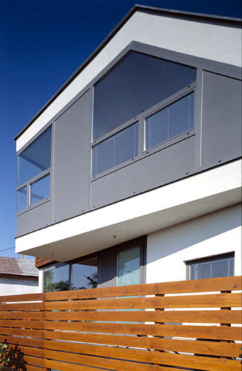 Nicht zueinander parallel und außerdem im Gefälle liegende Traufen und First sowie unterschiedlich große und geneigte Dachflächen erzeugen diese Eleganz der Unregelmäßigkeit und jene spielerische Leichtigkeit dieser Komposition, die sowohl äußerst ästhetische als auch differenziert nutzbare Außen- und Innenräume erzielt und ohne weiteres über die oberirdische Nettowohnfläche von ca. 86 m² hinwegtäuschen kann. (Text: Roland Pawlitschko)