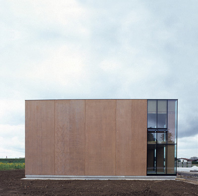 Im Gegenteil: der Brautmodesalon, den der Linzer Architekt Andreas Heidl in Gunskirchen errichtet hat, ist bereits von weitem als uneingeschränktes Bekenntnis zum strengen Sittenkodex engagierter Architektur ersichtlich. Als U-förmige erste Bauetappe seiner möglichen späteren Erweiterung zu einer quadratischen Hofanlage errichtet, steht der Block aus rötlich pigmentiertem Sichtbeton im rechten Winkel zur Bundesstraße. Zeigt damit den an dieser Stelle recht schnell vorbeifahrenden Autos ein äußerst einprägsames weil leicht lesbares Gesicht.