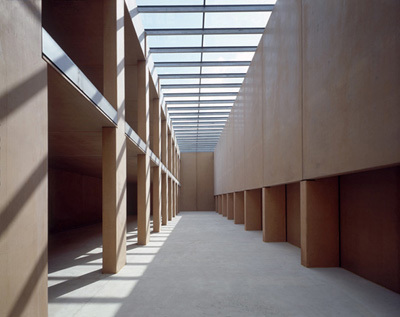 Die grundsätzliche Geschlossenheit der etwa drei Meter breiten und acht Meter hohen Betonelemente, die dem Haus seinen strikt eingehaltenen Modul vorgeben, ist innen wie außen unverletzt geblieben. Öffnungen werden ausschließlich durch das Weglassen ganzer Wandelemente erzeugt. Diese Konsequenz erzeugt nicht nur immense Wirkung, sie hat auch praktische Hintergründe: Produktion und Montage austauschbar gleicher Elemente ist selbst als Sonderabfertigung noch erschwinglich und außerdem ohne allzu große Probleme auf der Baustelle durchführbar.