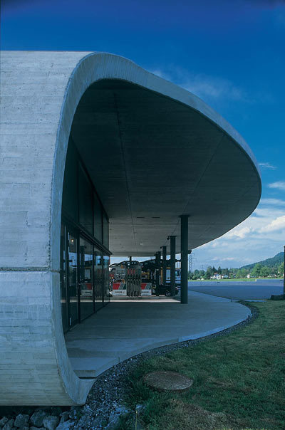Das Dach ist das Hauptthema. Für Beton als dominierendes Material sprach dessen vielseitige Einsetzbarkeit. Im Dach statisch ausgereizt, in der Rundung plastisch formbar und als Boden widerstandsfähig und dicht. Beton als Alleskönner ohne Verkleidung!