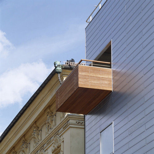 Der Entwurf war, obwohl Wettbewerbsergebnis, von Beginn an sehr umstritten. Diese Bedenken kristallisierten sich in maximalen brandschutztechnischen Auflagen. Alle Fassadenteile innerhalb eines Nahbereiches von sechs Metern zu den Nachbargebäuden sind in G 60 (beim vorspringenden Teil an der Nordseite F 60) ausgeführt. Es gibt, neben den üblichen Brandabschnitten und Fluchtwegsicherungen, eine flächendeckende automatische Löschanlage innen und eine Beregnung sämtlicher Fassadenflächen außen.