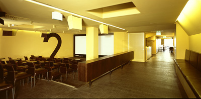 Das gesamte Raumgefüge ist offen, die Übergänge fließend, sämtliche Raumteile und ihre Infrastruktur können variabel gekoppelt werden. Unterstützt werden diese fließenden Übergänge durch Licht und Farbe, ein honigfarbener Ton überzieht die gesamte Raumoberfläche. Das Projekt wurde mit dem NÖ Landeskulturpreis 2004 ausgezeichnet. (Text: Architekt)
