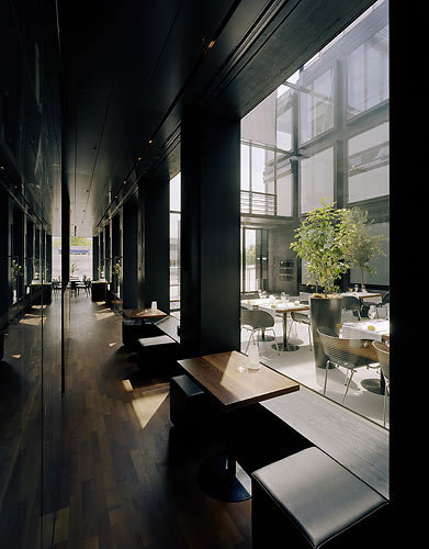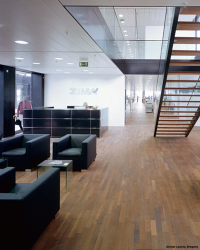 Der verglaste Innenhof stellt mit seinen offenen Brücken und Stegen unterschiedliche interne Blickbeziehungen her und ist aufgrund seiner räumlichen Großzügigkeit als halböffentlicher Gemeinschaftsbereich unterschiedlich nutzbar. Die element-Idee in der Diktion der Unternehmens-Website: „Ein völlig neuartiges Raumkonzept ermöglicht eine fokussierte, beinahe intuitive Arbeitsweise in einem inspirierendem Ambiente.“ Dieses Ambiente hat auch den Architekt selbst inspiriert, sich mit seinem Büro in diesem Hause niederzulassen. (Text: Gabriele Kaiser)