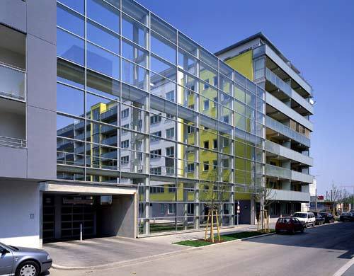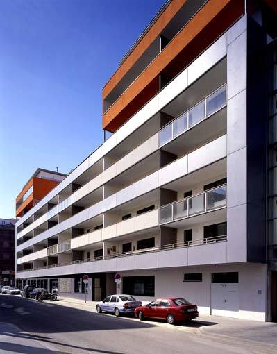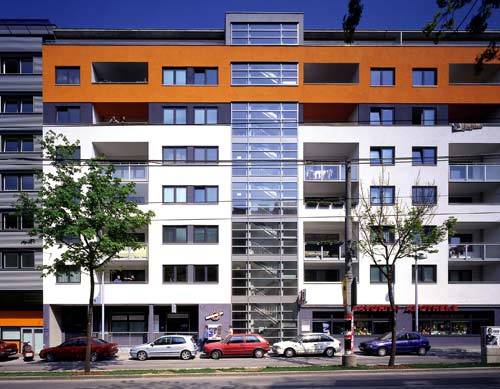 Die parallel zur Favoritenstraße verlaufende dreizahnige Kammbebauung wird fortgeführt und südlich entlang der Katharinengasse zu Höfen geschlossen, wobei die gesamte Erdgeschosszone mit Geschäfts-, Lokal- und Gemeinschaftsflächen (Stichwort „soziale Infrastruktur“) der Allgemeinheit zur Verfügung steht, somit der städtebauliche Takt der umgebenden Gründerzeitbebauung auch im neuen Quartier anklingen kann. Im Eigentumsbereich des Bauteils der SEG sind vier Stiegenhäuser situiert, was überschaubare Einheiten schuf und in der Kombination von Vier- und Fünfspännertypen eine Vielzahl von durchgesteckten Wohnungen ermöglichte. Zwei durchgehende Lichtschächte an den Gangenden werten im Bauteil Mischek die Mittelgangerschließung auf, und die Freiflächen (Loggien und Balkone) wurden jeweils sorgfältig auf die Ausrichtung der Baukörper und den Sonnenstand abgestimmt. Wie die klassischen Wohnhöfe mancher Gemeindebauten der 1920er Jahre stellt auch dieser Wohnbau ein selbstverständliches Gleichgewicht zwischen Offenheit und Rückzug, Innen und Außen her, ohne durch aufgesetzte Formalismen an Glaubwürdigkeit zu verlieren. Farbliche und strukturelle Diffenzierung dient der Gliederung und Auflockerung der Baumassen, ein schwebendes 6. Obergeschoss betont die Linearität des Kammes und setzt ihm sozusagen einen krönenden Schlussstein aufs Haupt. In der mitunter schwierigen Disziplin des Wohnbaus kann man sich, wie dieses Beispiel zeigt, auch taktvoll bewegen. (Text: Gabriele Kaiser)