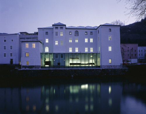 Im Keltenmuseum gelingt es –zusätzlich zu einer vorzüglichen Ausstellungsgestaltung –, einem alten Gebäude durch subtile Eingriffe einen beträchtlichen Mehrwert zu verschaffen.Flussseitig wird mittels einer leicht gekrümmten Glasfassade auf feinen Betonwinkeln ein schmaler Zubau ergänzt, der als neue Eingangs- und Erschließungszone dient, die zuerst am Gebäude entlang führt und direkt vor Heinz Tesars vertikalem Erschließungsturm endet. Durch die Lage und seine kontrastierende Ausführung konterkariert der Gang die Schwere der aufsteigenden Gebäudeteile, sowohl die des Altbaus als auch die der bereits vorgefundenen Ergänzung durch Heinz Tesar. Erst durch den Zubau werden diese wirklich erlebbar, umso mehr, als nun auch die unmittelbare Nähe des darunter vorbei fließenden Flusses publikumswirksam inszeniert wird. (Jurytext Architekturpreis Land Salzburg 2004, Michael Zinganel)