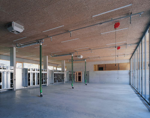 Das verwendete Bauholz (Konstruktion und Fassade Fichte, Innenausbau Weißtanne) wurde ausschließlich aus heimischem Bestand bezogen, ein großer Teil davon sogar aus dem Schoppernauer Gemeindewald. Die regionalen Ressourcen wurden somit optimal genutzt und die heimische Holzwirtschaft gefördert. (Text: Architekt)