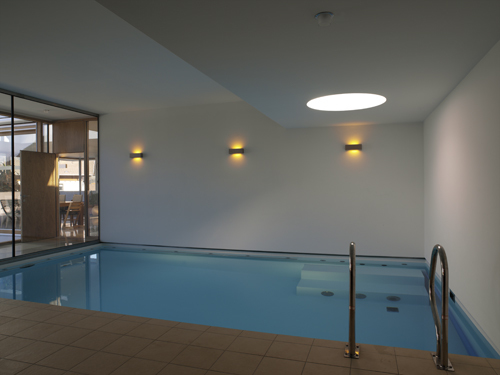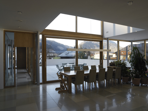 Ein ruhiger Ort mit ausgewogenen Materialien, erlebnisreichen und zugleich beruhigenden Räumen, mit Privatheit und gleichzeitig Öffnung zur Natur, soll dem oft unter Druck stehenden täglichen Agieren eines Firmenchefs mit seiner Familie ein Ambiente zum Wohlfühlen, zum Entspannen und zum familiären Miteinander bieten. (Text des Architekten)
