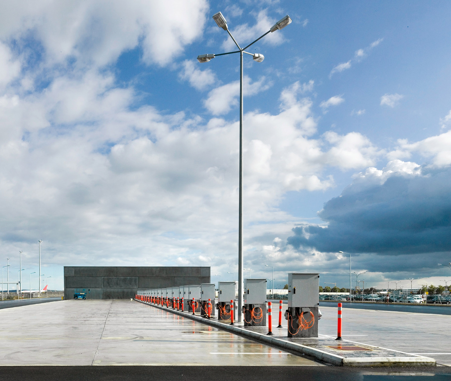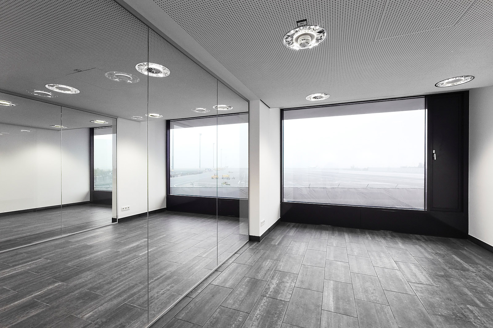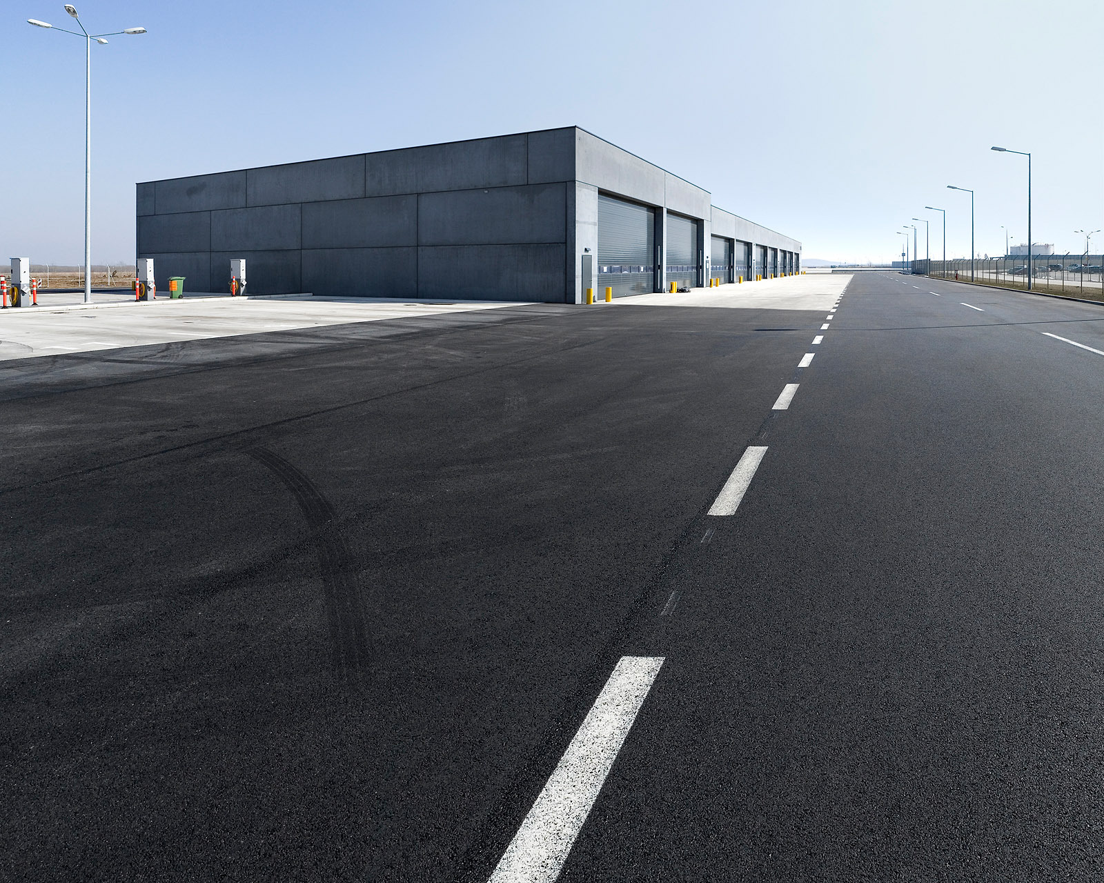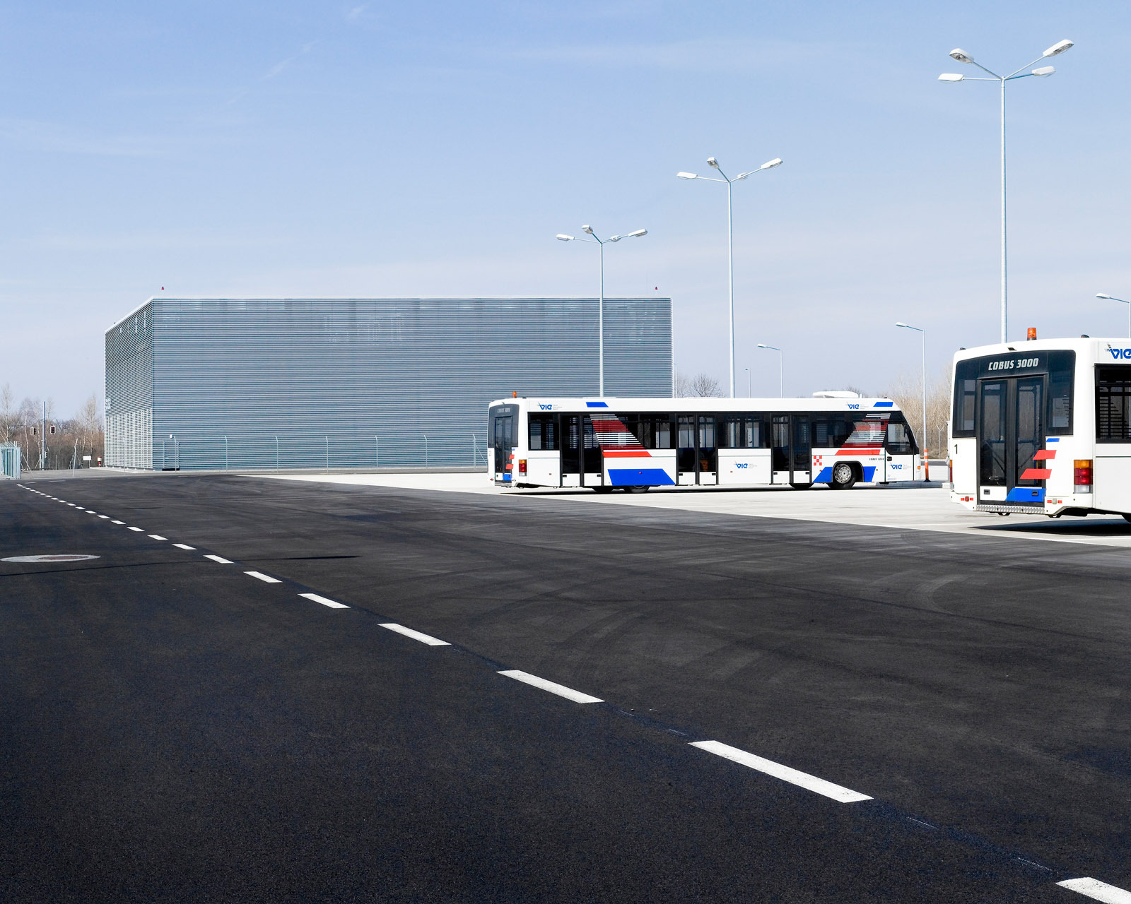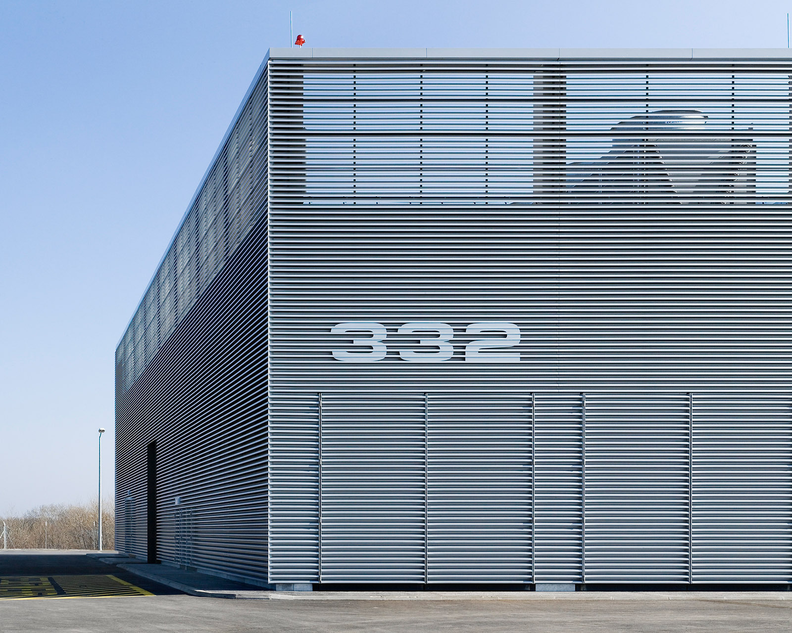 Im Infrastrukturgebäude (Ibno) zur Versorgung der in Planung und Bau befindlichen Flughafenerweiterungen sind eine Trafostation und eine Kältezentrale untergebracht, welche aufgrund des Redimensionierungsprozesses im Skylink-Projekt nicht im neuen Terminalgebäude untergebracht werden kann. Aufgrund der großen Distanzen wird die Luftfahrzeug-Abfertigung im erweiterten Gelände in Zonen aufgeteilt. Ergänzend zum 2005 fertiggestellten Handling-Center West von Andreas Treusch (siehe gesonderten Eintrag) wurde in linearer Verbindung mit dem Infrastrukturgebäude Nord-Ost eine Geräteeinstellhalle errichtet, die zur Aufnahme der für das Vorfeld-Handling benötigten Fahrzeuge und Geräte dient und zudem Büroflächen und Bereitschaftsräume enthält. (Text: Gabriele Kaiser)