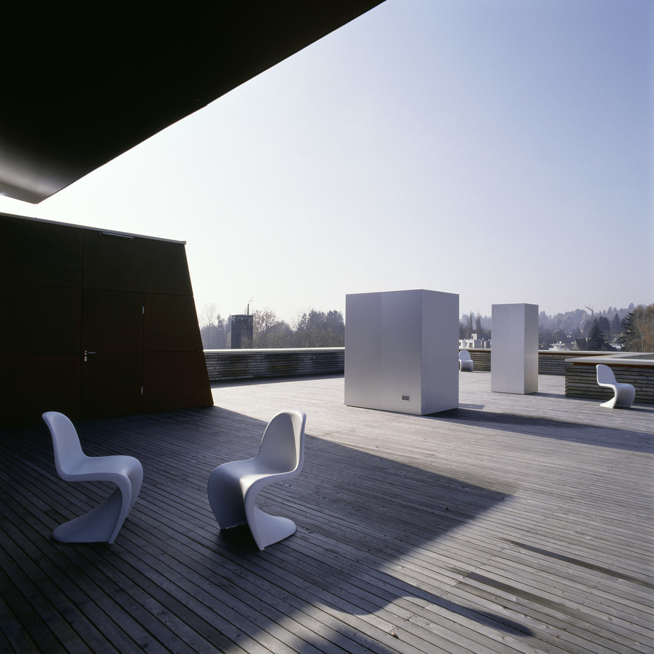 Trotz der gegenüber dem Flächenwidmungsplan überschrittenen Dichte war es möglich, die Zubauten an den Gebäudeköpfen, im Dach- und Eingangsbereich vorzunehmen, welche die gewünschte Lebensqualität der Student:innen gewährleisten. Die klare und prägnante Eingangssituation wertet das Gebäude zusätzlich auf.