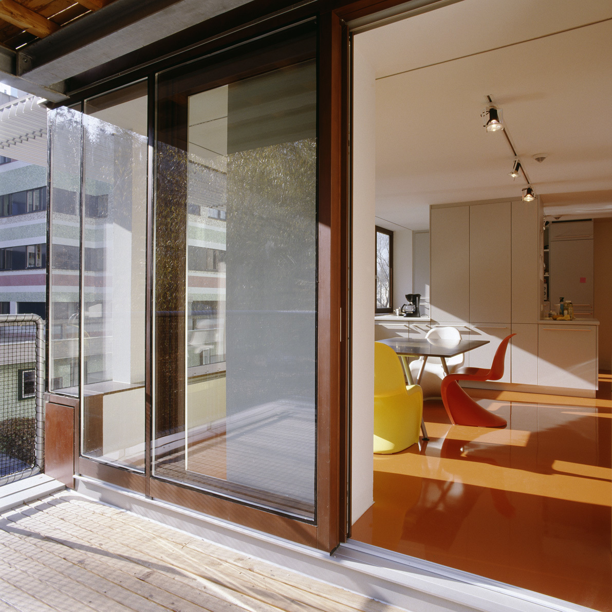 Die bisher innen liegenden Wohnräume und Küchen wurden an den Gebäudeköpfen zu Wohnküchen zusammengelegt und über großzügige Terrassen oder Balkone erweitert und belichtet. Die Gangzonen wurden durch Erweiterungen, Schiebetüren zu den Wohnräumen, Farb- und Oberflächengestaltung, etc. aufgewertet. Die Zimmernutzflächen konnten durch die entfallenen Waschplätze in den Zimmern vergrößert, die Belichtungssituation durch den Einbau von Fenstertüren verbessert werden.