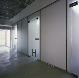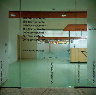 Fixe Einbauten wurden vermieden, neue Installationen leicht zugänglich verlegt, die Anspeisungen durchwegs von den Decken geführt. Die Adaptierung veredelt mit subtilem Detailwitz die Beschränktheit der Mittel und versteht die rasche Fluktuation und die Spontaneität der Nutzungen nicht als Bedrohung von Gestaltung, sondern als ein antizipiertes und erwünschtes Prinzip. (Text: Otto Kapfinger, 12.11.2001)