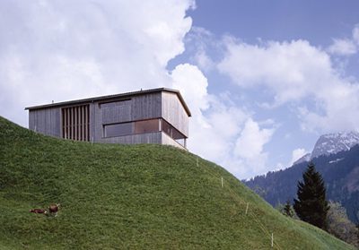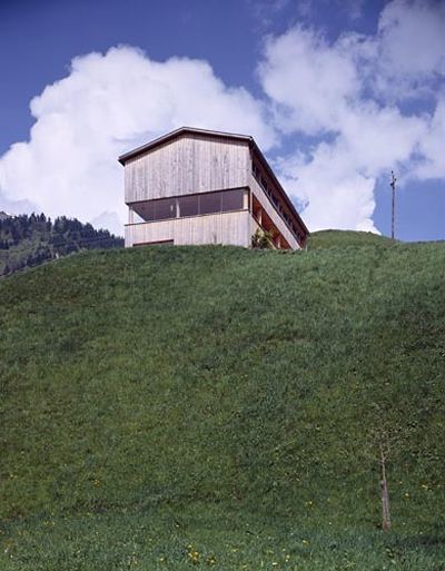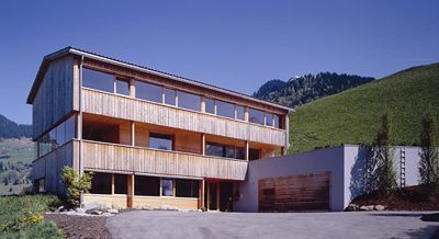 Das verwendete Tannenholz sowie der klare Baukörper entsprechen der regionalen Bautradition und fügen sich harmonisch in das landschaftliche Gesamtbild. (03.09.2001)