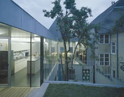 Das in Steyr ansässige Architekturbüro trat mit der Revitalisierung dieses im Kern gotischen Altststadthauses den Beweis an, dass historische Substanz nicht als unantastbarer Bestand innerstädtischer Strukturen mumifiziert werden muss, sondern sich für zeitgemässe urbane Wohnformen sehr wohl eignet. Verwunderlich sei beim Umgang mit Altsubstanz vor allem, so die Architekten, „dass bauphysikalischen Nachteilen nur selten entgegengewirkt wird, um heutigen Lebenskomfort zu gewährleisten. Zu hoch scheint die Angst vor dem Aufwand an Eingriffen zu sein.“Der Um- und Zubau in Steyr veranschaulicht das Gegenteil auf eindrückliche Weise: Trotz Verdoppelung des Volumens konnte der energetische Jahresbedarf von 271 kWh/(m2a) auf 49 kWh/(m2a) herabgesenkt werden. Das eingeschossige Haus mit 2-geschossiger Scheinfassade wurde saniert und wärmetechnisch auf Standard gebracht, das Dach aus späterer Zeit abgetragen und ein neues Vollgeschoss aufgesetzt. Der Zubau im Hof erstreckt sich über die halbe Grundstücksbreite, ein neuer „Deckel“ mit elfenbeinfarbiger Untersicht betont die Einheit des Hauses, das entgegen gängiger Praxis des Trennens von Alt und Neu in seinen Zeitschichten zu einem neuen Ganzen verschmilzt. Vorhandene Qualitäten des Ortes wie der rückseitige Waldhang, der aussergewöhnliche Weitblick über die Enns und die Intimität eines klassischen Innenhofs sind durch die architektonischen Eingriffe intensiver erlebbar. Die niedrigen Nettoherstellungskosten (453 Euro/m2) zeigen zudem, dass man hier auf den unterschiedlichsten Ebenen – im energetischen, gestalterischen und ökonomischen Sinn – gewissenhaft agiert hat. (Text: Gabriele Kaiser)