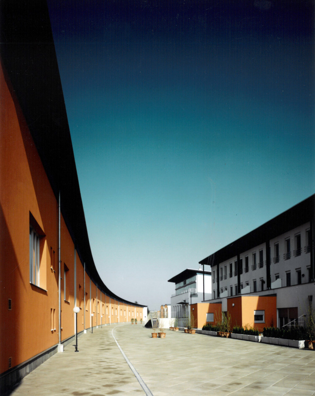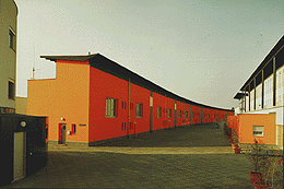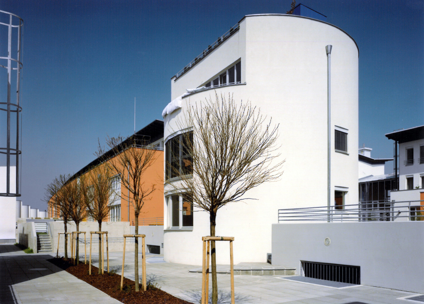 Dieser Platz mit Gasthaus, Cafe, einigen Pavillons für Trafik, etc. sowie mit einem runden Gemeinschafts- und Kinderhaus stellt den sozialen Treffpunktsort dar.