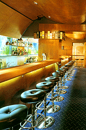 In letztere gelangt man entweder durch das Lokal im Erdgeschoss bzw. direkt über die Seitenstettengasse. Über eine Betontreppe gelangt man ins OG, wo ein Glasboden in die Cocktailbar führt. Dieser ist mit Teppichböden ausgestattet.