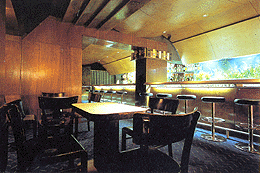 Die Bar ist durch ein Aquarium mit Pflanzen an der Barrückwand hell erleuchtet.
