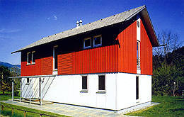 Auf der Nordseite des Hauses findet man thermische Pufferzonen, die Südseite ist grosszügig verglast. Die Sonnenenergie wird durch den Einsatz von Sonnenkollektoren auf der Dachfläche des Wohnraumvorbaues zur Warmwasseraufbereitung genutzt. Die überbaute Grundstücksfläche ist mit 98 m² äusserst gering, trotzdem beträgt die Wohnnutzfläche 143 m².