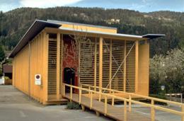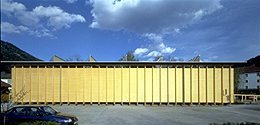 Materialien: Die Entwicklung des Holzbaues wird wesentlich durch neue „Holzfabrikate“ beeinflußt, welche neue Wege für die Anwendung dieses Materials eröffnen. So wurde z.B. für die Dachkonstruktion der Ausstellungshalle die aus Kanada stammende Intrallamplatte (Furnierstreifenholz) mit dem Standardformat 2,34x10,67 m und Dicken von 25-140 mm eingesetzt. Der Sog, der durch die neuen Möglichkeiten entsteht, erfasst auch das bestehende und forciert den Markt.