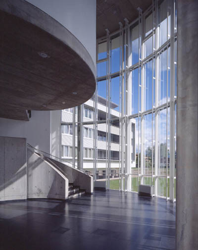 Der Bau versteht sich als dreiteilige Komposition, welche den drei unterschiedlichen Funktionen folgt: