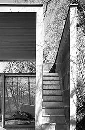 Auch konstruktiv wurde differenziert: der introvertierte Schlafbereich ist massiv und verschalt, der offene Wohnteil hat eine minimierte Stahl-Holz-Struktur, bekleidet mit farbigem Eternit und Oregon-Fichte. (Text: Otto Kapfinger in „Baukunst in Vorarlberg seit 1980, Hrsg. VAI / KUB“)
