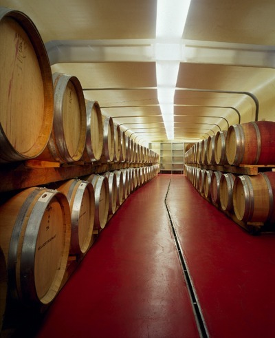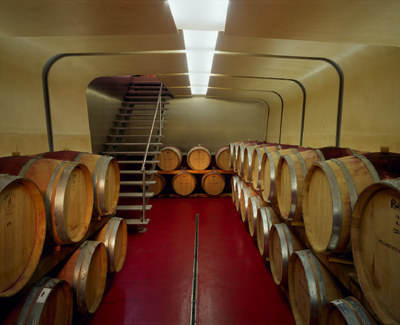 Nach einigen Überlegungen entschied sich der Bauherr, den schimmeligen Urkeller auch nutzbar zu machen und seine Barriquefässer darin zu lagern. Über den angrenzenden Eingangsbereich gelangen nun die Weinliebhaber in den langen, sehr schmalen Keller. Dem alten Gemäuer wurde eine dichte Betonwanne vorgesetzt, um konstante Klimabedingungen für die Lagerung zu garantieren und gleichzeitig das alte Gemäuer weiter atmen zu lassen.