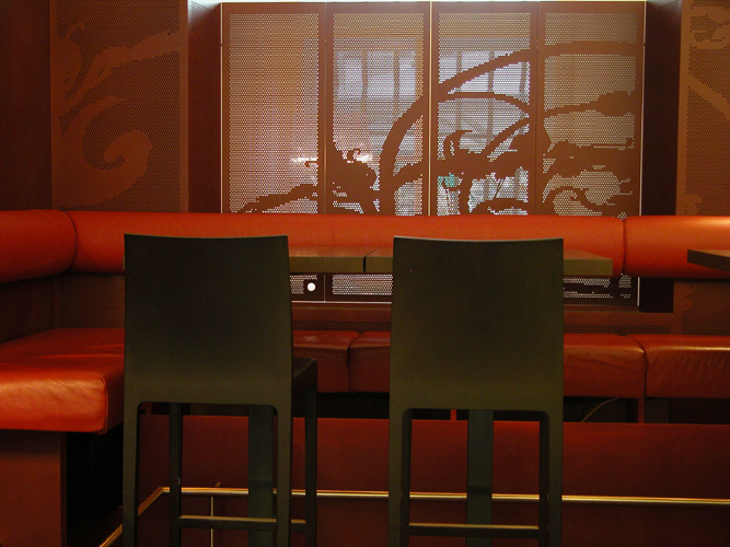 Um keine „toten“ Fenster in den Fassaden zu erhalten, wählten wir als Klima- und Sonnenschutz eine Konstruktion aus feinem Streckmetall.