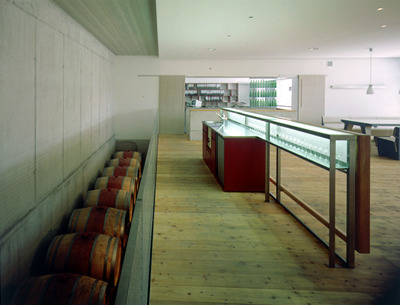 Das Zentrum der Anlage bildet der Fasskeller (Schnittstelle zwischen Kunden und Produzenten), der direkt mit dem Verkostungsraum, der Vinothek verbunden ist. Diese Verbindung erfolgt durch eine Öffnung in der Holzdecke, die einen Blick auf die Fässer gestattet. Tagsüber fällt Tageslicht in den Keller, bei Dunkelheit wird die Vinothek über künstliches Licht aus der Kelleröffnung beleuchtet. Weiters führt eine Treppe direkt von der Vinothek in den Fasskeller. Durch beide Öffnungen ziehen sich Sichtbetonelemente vom Keller ins Erdgeschoss.