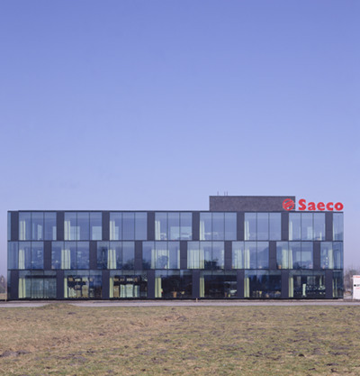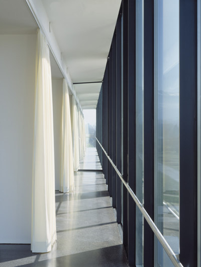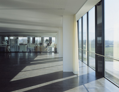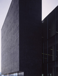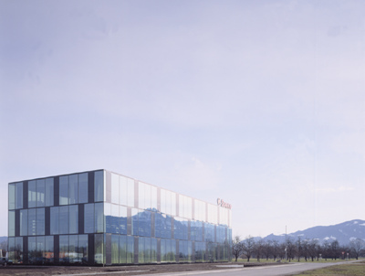 Die durch Glaszwischenwände unterteilten Geschoße werden umhüllt von einer klassischen, transparenten Vorhangfassade. Ihren spezifischen Ausdruck erhält diese gläserne Haut allein durch die gereihten, auf der mittleren Ebene leicht versetzten Lüftungsflügel in einem dunklen Farbton. Eine noble Zurückhaltung prägt das ganze Gebäude - von den durchgängig verwendeten Materialien bis hin zur Möblierung. Mit einer Ausnahme: Die Espressobar am Eingang macht durch eine beleuchtete Theke und eine lachsfarbene Wand in Stuccolustro-Technik auf sich aufmerksam. (Text: Wolfgang Jean Stock)