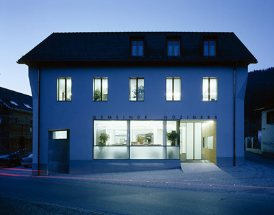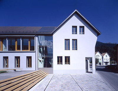 Mit der funktionalen Umdeutung eines gewohnten Objektes aus der Vorarlberger Arbeitswelt wurde nicht nur der Ortskern aufgewertet, sondern auch eine bürgernahe „Servicezentrale“ mit hohen gestalterischen Qualitäten geschaffen, die vergangene Spuren nicht auslöscht, sondern grosszügig mitträgt. (Text: Gabriele Kaiser)