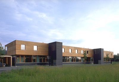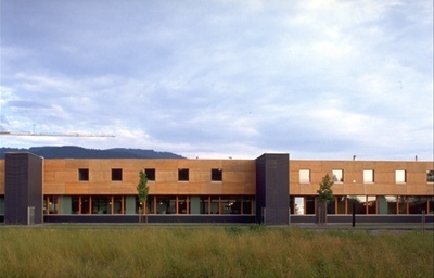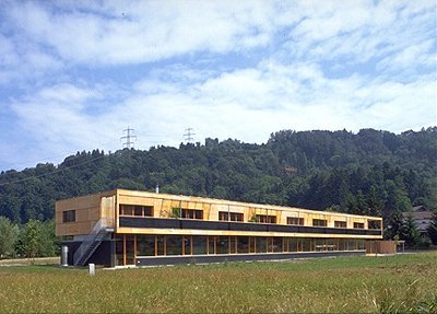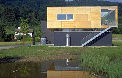Der Bau ist der Ausdruck dessen, wie im Büro Kaufmann/Lenz/Gmeiner gedacht und gearbeitet wird: klare, pragmatische Architektursprache mit Baukörpern, die aus sinnvollem Materialeinsatz entstehen und zudem ein hohes Mass an ökologischer Verantwortung mit sich haben.