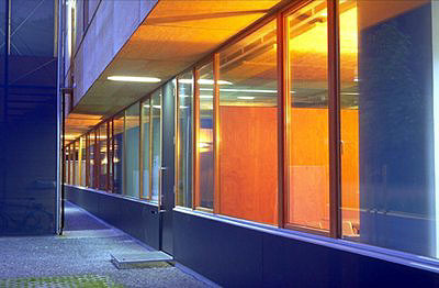 Büro sowie Wohnungen sind mit kontrollierter Lüftung ausgestattet, die Zusatzheizung erfolgt über einen Gaskessel. Auf Grund der Gebäudesimulation lässt sich im Wohngeschoss ein Heizenergieverbrauch von 23 KWh/m2 und Jahr erwarten. In den Büroräumen sind auf Grund der hohen internen Energiequellen 10 KWh/m2 zu erwarten. (Text: Architekt)
