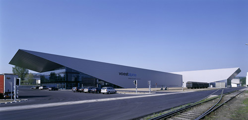 Funktional ist das Gebäude eine Schnittstelle zwischen Straßen-, Schienen- und Wasserverkehr. Zulieferung und Warenausgabe sind Zeichen der Dynamik und Leistungsfähigkeit der Firma SSC. Architektonisch wird wirtschaftlicher Erfolg durch die weit geöffneten Zugänge visualisiert. Die weit auskragende Dachform verstärkt die Aussage und lenkt die Aufmerksamkeit auf die Fähigkeiten des Firmenmaterials Stahl. Im heterogenen Umfeld der Industriezone mit ihren Firmenschriftzeichen und Logos ist das Gebäude Symbol für Funktionalität und Glaubwürdigkeit. Das Konzept folgt der marktwirtschaftlichen Forderung nach einer ‚Corporate Architecture'.