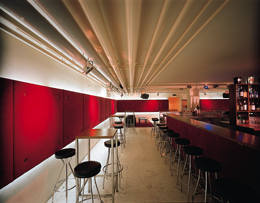Die Bar selbst soll möglichst einfach veränderbar und flexibel für den Nutzer sein, daraus resultierten die fahrbaren Barkorpen und die schnell wendbaren, gepolsterten Wandelemente, die einerseits zum Anlehnen gedacht sind, andererseits die Akustik des Raumes bestimmen. Das Material dieser wendbaren Elemente ist einerseits roter Samt, andererseits weißes Kunstleder. Unterschiedliche Raumeindrücke können die Bar in kürzester Zeit in Aussehen und Atmosphäre verändern, was durch gezielt eingesetzte Beleuchtung noch klarer hervorgehoben werden kann.