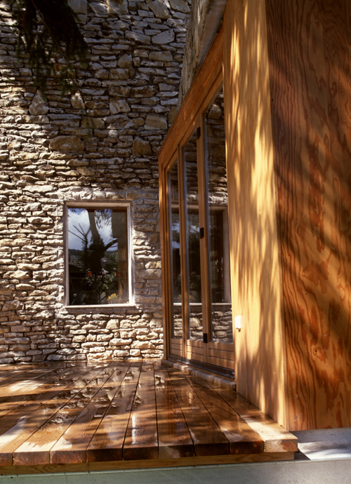 As for building materials, after several versions we finally decided to stick to stone face-work, combined with polished stone and wood-facing, which continues the simple handicraft style of the original house.