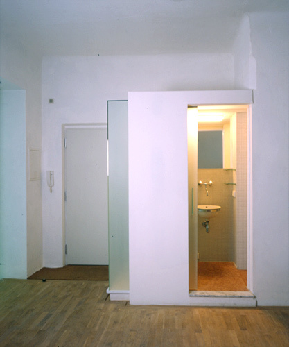 trotz notwendiger Abtrennungen und Einbauten als Loftwohnung erhalten.