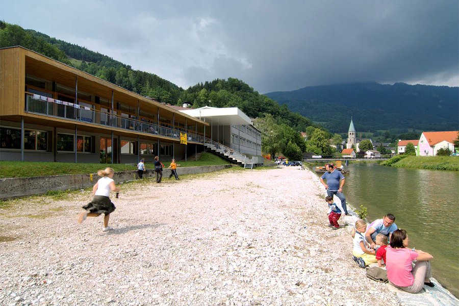 Die in den 1960er Jahren gebaute Haupt- und Volksschule Reichraming erstreckt sich über 140 m entlang des landschaftlich reizvollen Reichramingbaches, ohne mit diesem in Beziehung zu treten. Es gibt von der Schule aus keinen Zugang und keine Orientierung zum Fluss hin.Volksschulhaus und Hauptschule werden durch einen niedrigeren Mitteltrakt mit Werkräumen, Schwimmbad, Turnhalle usw. miteinander verbunden.
