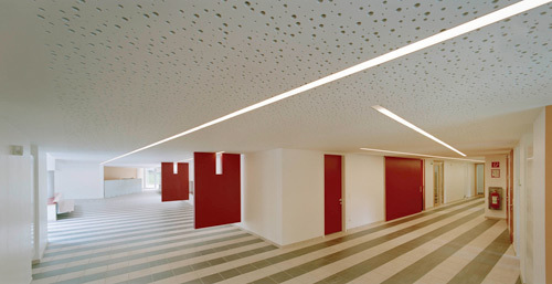Durch den Zubau verändern sich das Gleichgewicht und damit der Mittelpunkt des Bauwerkes. Der seinerzeitige Zugang zum Bestandsgebäude wurde geschlossen, der Eingang in den neu entstehenden Mittelpunkt gerückt, so dass annähernd gleich lange Wege vom Haupteingang zu den einzelnen Einheiten zurückgelegt werden müssen. Dadurch wird die Übersichtlichkeit des gesamten Objektes (inkl. Zubau) gewahrt.