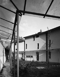 Die Variation der Grundrisse ist auch an den feinen Differenzen der Fenstergliederungen spürbar. Die in der Höhe und südseitig entkoppelten, mit den Veranden wieder verbundenen Häuser haben gemauerte Außenwände und darin hineingestellte, sichtbare Holzkonstruktionen. (Text: Otto Kapfinger in „Baukunst in Vorarlberg seit 1980, Hrsg. VAI / KUB“)
