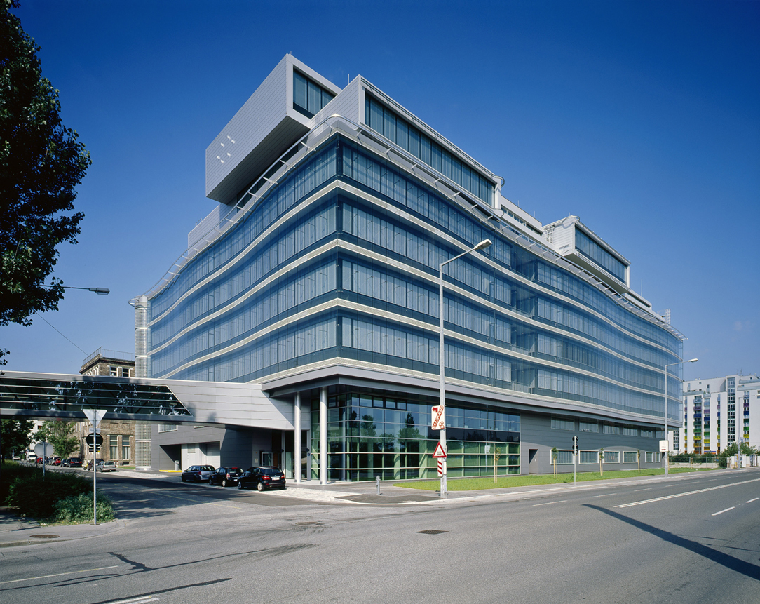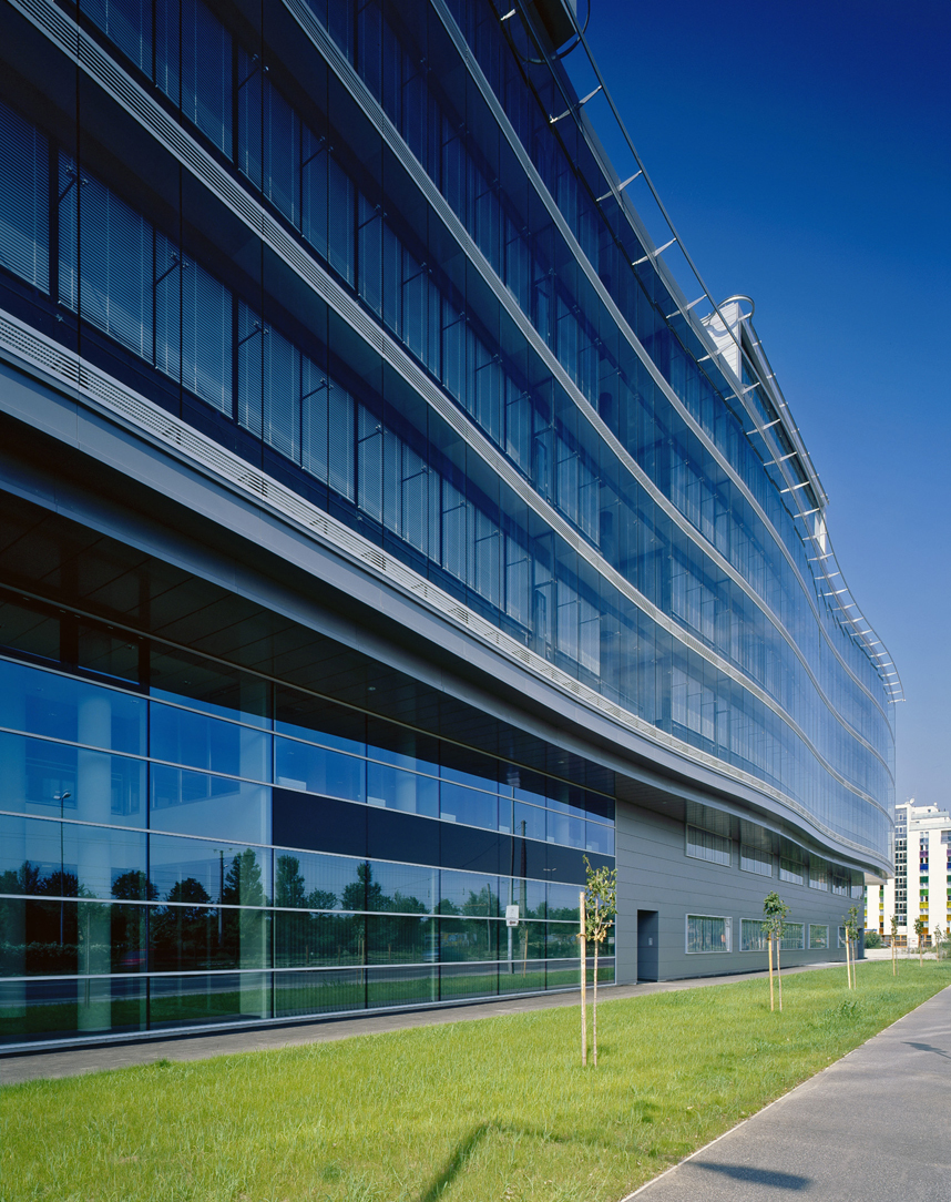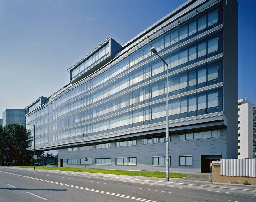 Nach der Fusion der Pensionsversicherungsanstalt der Arbeiter und der Angestellten im Jahr 2003 entstand der Bedarf, alle Wiener Standorte zusammenzulegen. Ursprünglich war eine Aufstockung der bestehenden, von Architekt Hlavenicka geplanten Zentrale in der Wiener Friedrich-Hillegeist-Straße vorgesehen, aus wirtschaftlichen Gründen entschied man sich jedoch für einen Neubau auf dem benachbarten Siemens-Gelände. Das neue achtgeschossige Bürogebäude ist mit dem bestehenden durch eine 70 Meter lange Brücke verbunden, eine zusätzliche Erweiterung im Anschluss an den Neubau soll 2012 fertiggestellt werden.Der neue Baukörper ist vertikal in drei Zonen gegliedert, den Sockelbereich, die Mittelzone mit den vier Regelgeschossen und den zweigeschossigen Dachbereich. Handelskaiseitig bietet sich den Nutzern bereits ab dem ersten Obergeschoß ein weitreichender Blick über die Donau, hier befinden sich neben Büroräumen auch die Direktionsbereiche. Gegenüber der zentralen Liftlobby sind in jedem Geschoss eine Einheit aus abschließbarem Besprechungsraum, Teeküche und Pausenbereich angeordnet. In den Dachgeschossen öffnen sich die jeweils in Raucher- und Nichtraucherzone getrennten Pausenbereiche auf Terrassen, in den darunterliegenden Stockwerken in Wintergärten. Ein großer Gebäudeeinschnitt Richtung Wehlistraße schafft einen Innenhof für Schulungsräumlichkeiten und belichtet die hier situierten Großraumbüros. Im ersten Stock bietet eine kleine Kantine, die aus einem fröhlich gestalteten Verkaufsbereich und ansprechendem Stehtischbereich besteht, den Mitarbeitern eine angenehme Erholungszone.