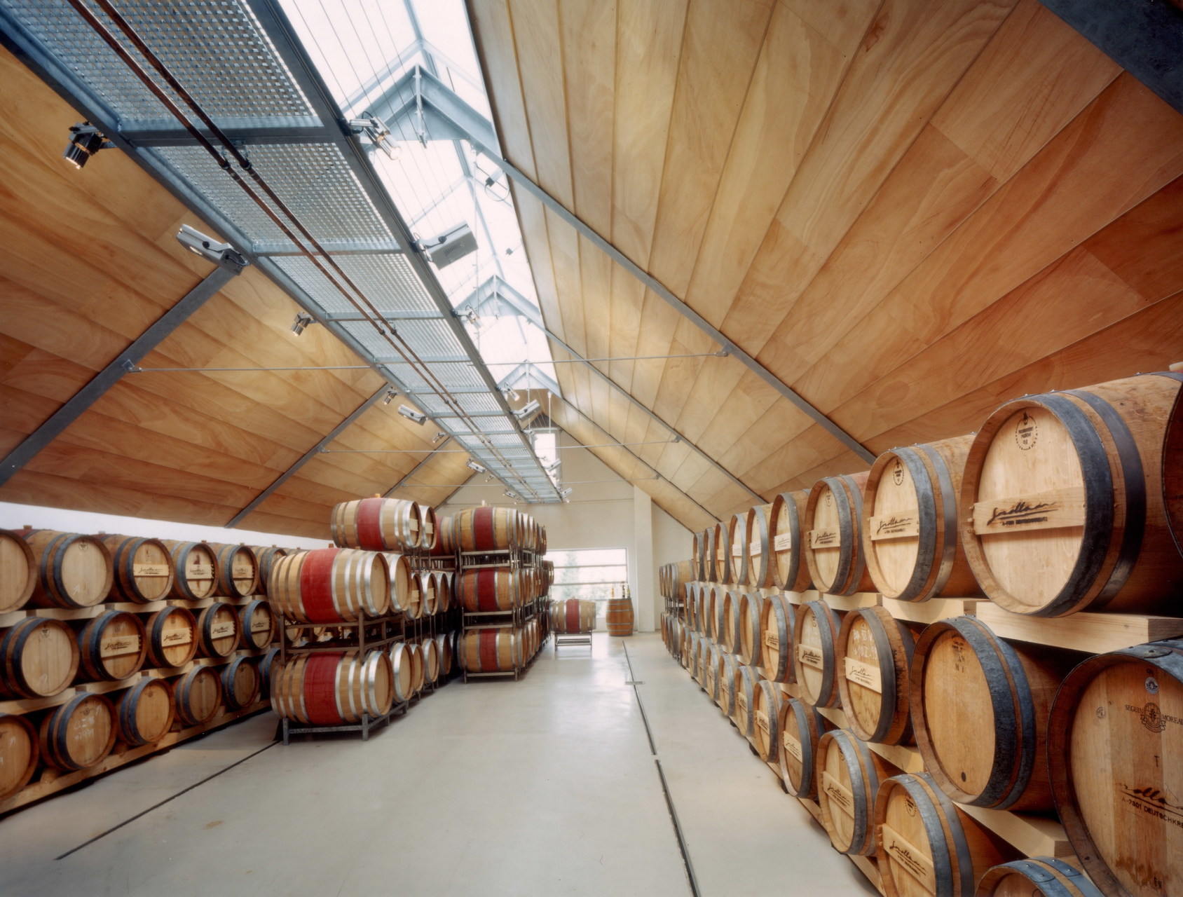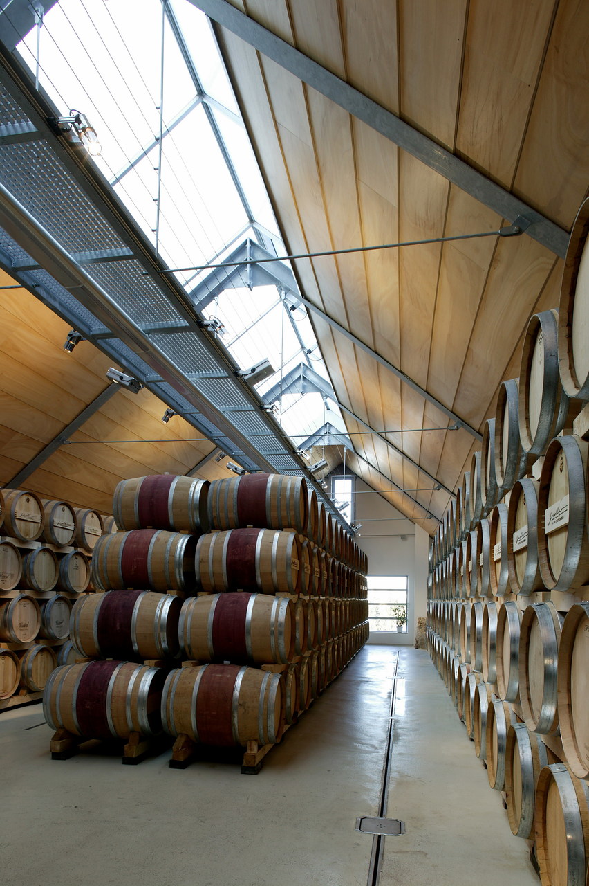 Wunsch des Bauherrn war, im ersten Bauabschnitt das bestehende Weingut durch einen Zubau für die gesamte Weinproduktion – von der Abfüllung bis zur Lagerung zu erweitern. Ein historischer Gewölbekeller sollte erhalten und durch einen Präsentationsraum ergänzt werden. Der dreigeschossige Hauptbaukörper (Flaschenkeller, Abfüllraum und Fasslagerraum) wurde direkt an das bestehende Weingut angebaut und erweitert die Produktionsflächen.
