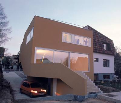 Trotzdem ist das Haus keine der trendigen Stahl-Glas-Holz- kisten, sondern eine bewohnbare Bauplastik, die - im Gegensatz zu den zahlreichen anderen Vertretern ihrer Spezies - sehr wohl alle notwendigen und sinnvollen Wohnfunktionen gewissenhaft erfüllt.